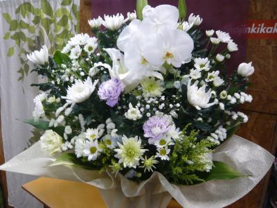 【お悔やみ・お供え】プロにおまかせ アレンジメント「白上がり」3,850円