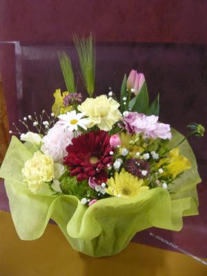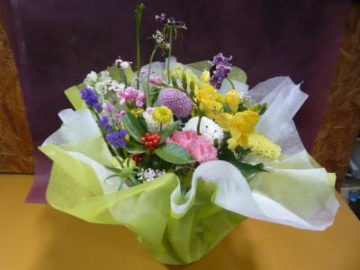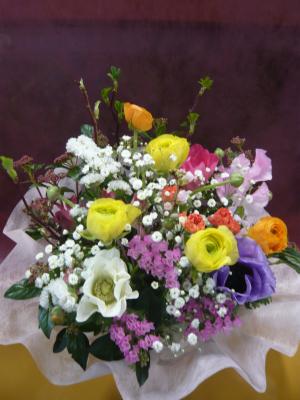 トルコギキョウ入れたピンク・パープル系おまかせアレンジ
