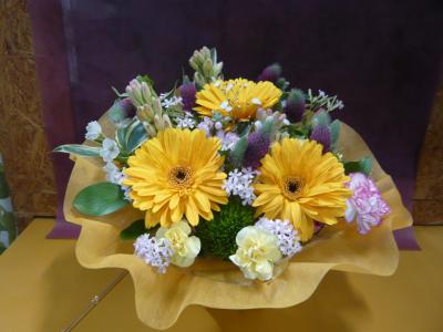 【お祝い花】プロにおまかせ豪華 ブーケ「黄色・オレンジ系」11,000円