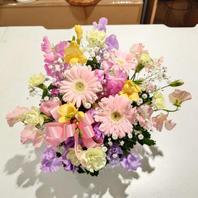 ピンクバラ入れたピンク系おまかせアレンジ