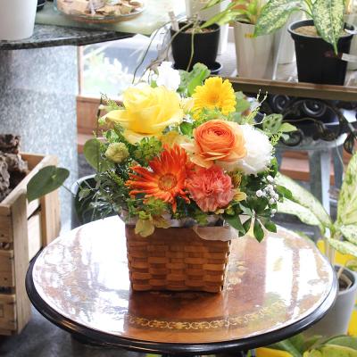オレンジバラ入れたオレンジ・イエロー系おまかせアレンジ