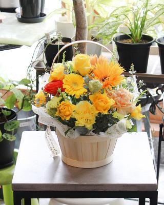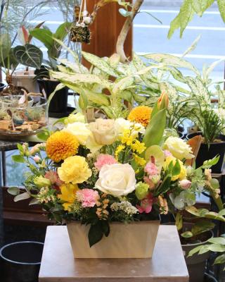 【お祝い花】プロにおまかせ豪華アレンジ「黄色・オレンジ系」11,000円