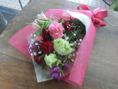 【お祝い花】プロにおまかせ ブーケ「赤系」3,850円