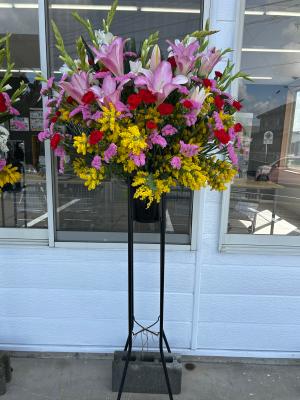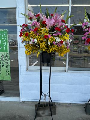 【お祝い花】 プロにおまかせ 豪華アレンジメント「ピンク・赤系」