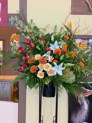 季節の華やかな1段スタンドフラワー【主な配達地域:群馬県太田市】