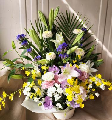 【お悔やみ・お供え】プロにおまかせアレンジメント 淡い色入り 3,850円