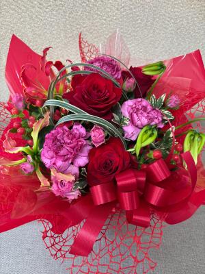【お祝い花】プロにおまかせ アレンジメント「赤系」3,850円