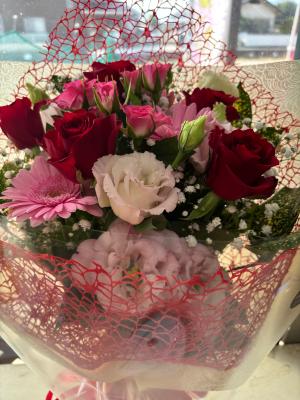 【お祝い花】プロにおまかせ ブーケ「赤系」3,850円