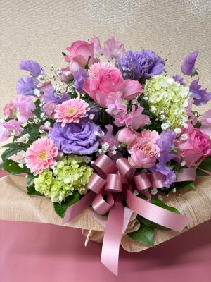 トルコギキョウ入れたピンク・パープル系おまかせアレンジ