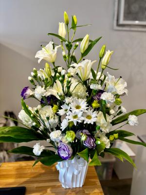 【お悔やみ・お供え】プロにおまかせ アレンジメント「白上がり」3,850円