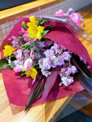 【お祝い花】プロにおまかせ ブーケ「赤系」3,850円