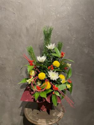 白菊と松のアレンジメント
