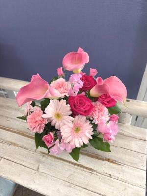 ピンクバラを入れたピンク系おまかせアレンジ