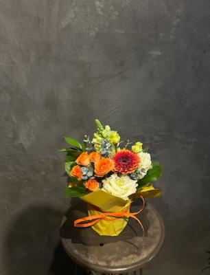 オレンジバラ入れたオレンジ・イエロー系おまかせアレンジ