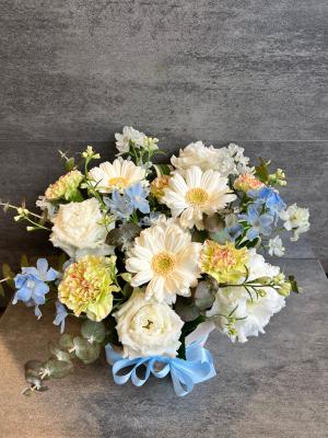 淡いピンク系のお供えアレンジメント