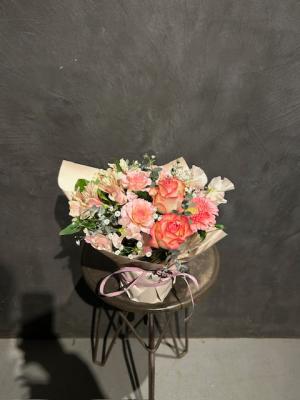 ピンクバラを入れたピンク系おまかせアレンジ