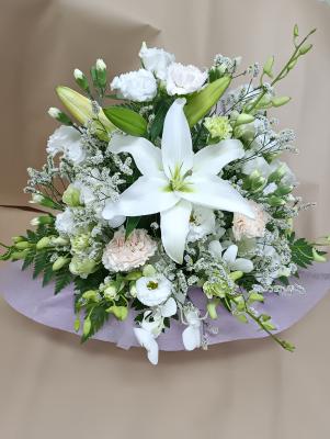 【お悔やみ・お供え】プロにおまかせ アレンジメント「白上がり」3,850円