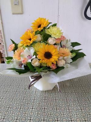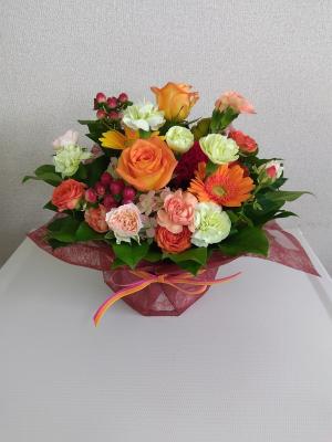 【お祝い花】プロにおまかせ アレンジメント「黄色・オレンジ系」3,850円