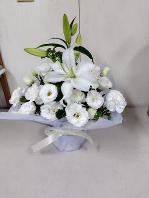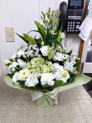 【お悔やみ・お供え】プロにおまかせ アレンジメント「白上がり」3,850円