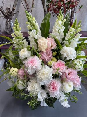 お花の種類を豊富にとりそろえ、オーソドックスなもの、また斬新なものまで幅広く、当店のフラワーデザイナーが心をこめてお作りいたします。