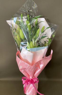 ピンクユリを入れたピンク系おまかせアレンジ