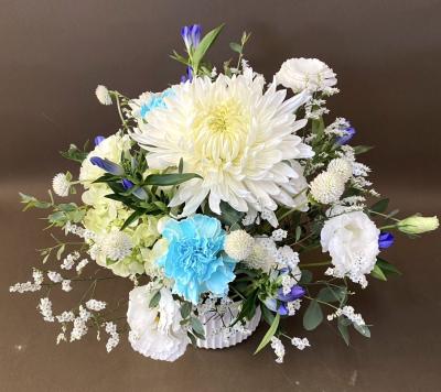 【お悔やみ・お供え】プロにおまかせ アレンジメント「白上がり」3,850円