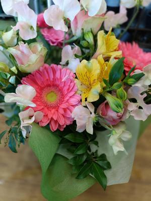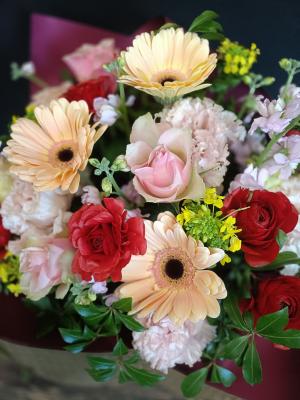 ピンクバラを入れたピンク系おまかせアレンジ
