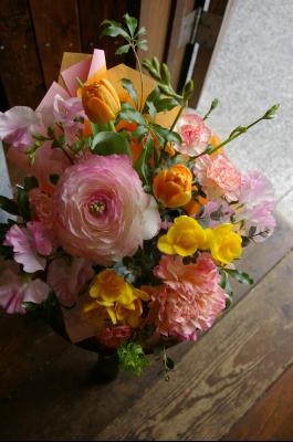 【お祝い花】プロにおまかせ 豪華アレンジメント「黄色・オレンジ系」