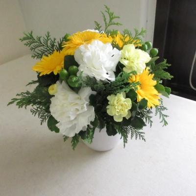 黄色のガーベラとトルコキキョウのアレンジメント!