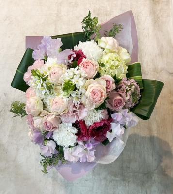 トルコギキョウ入れたピンク・パープル系おまかせアレンジ