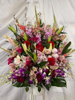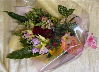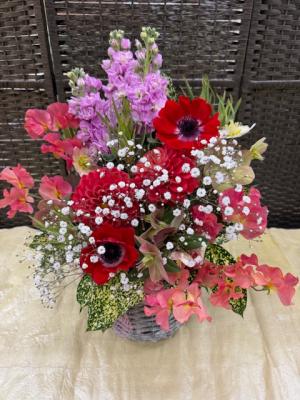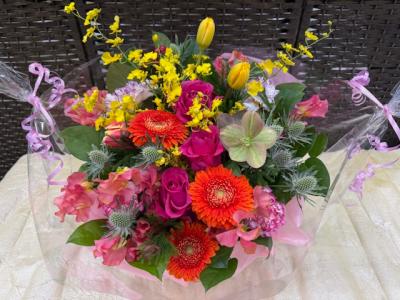 トルコギキョウ入れたピンク・パープル系おまかせアレンジ
