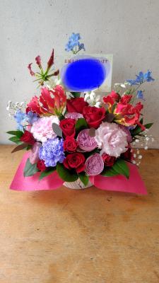 【お祝い花】 プロにおまかせ 豪華アレンジメント「ピンク・赤系」