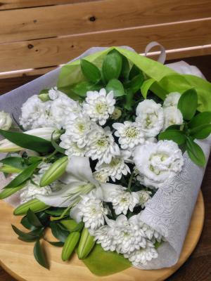 【お悔やみ・お供え】プロにおまかせ アレンジメント「白上がり」3,850円