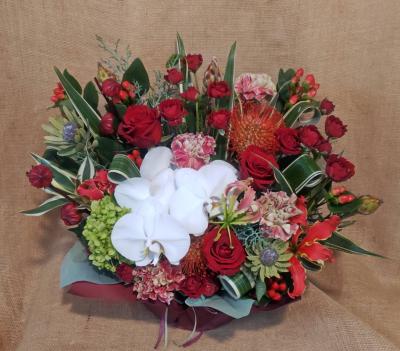 【お祝い花】プロにおまかせ ブーケ「赤系」3,850円