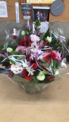 【お祝い花】プロにおまかせ ブーケ「赤系」3,850円