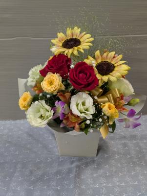 【お祝い花】プロにおまかせ アレンジメント「黄色・オレンジ系」3,850円