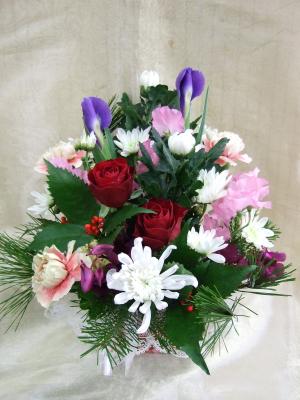 【お祝い花】プロにおまかせ 豪華アレンジメント「ピンク・赤系」