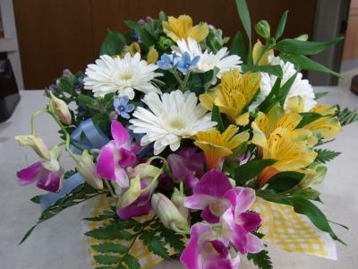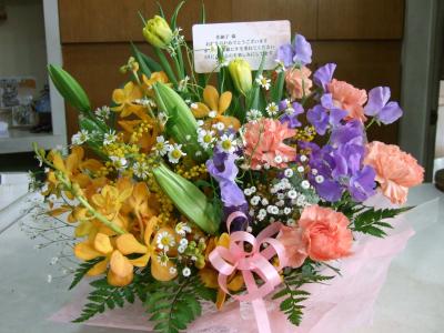 【お祝い花】プロにおまかせ 豪華アレンジメント「黄色・オレンジ系」