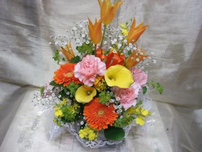【お祝い花】 プロにおまかせ 豪華アレンジメント「黄色・オレンジ系」