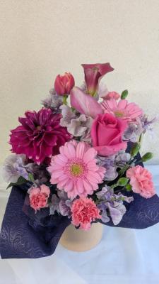 トルコギキョウ入れたピンク・パープル系おまかせアレンジ