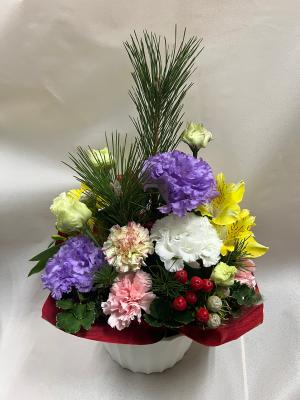 トルコギキョウとカーネーションの迎春アレンジメント