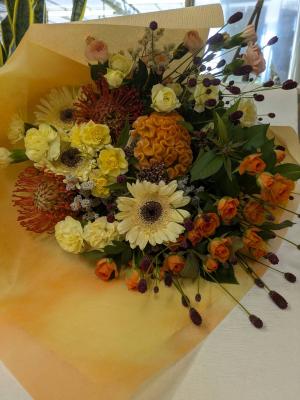 【お祝い花】プロにおまかせ アレンジメント「黄色・オレンジ系」3,850円