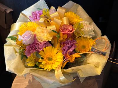 【お祝い花】プロにおまかせ アレンジメント「黄色・オレンジ系」3,850円