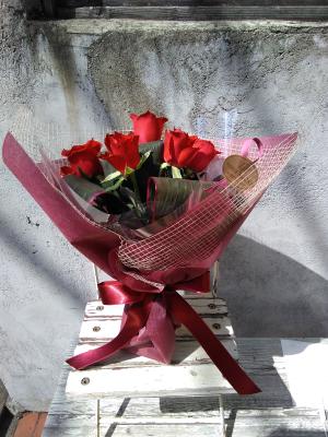 【お祝い花】プロにおまかせ ブーケ「赤系」3,850円