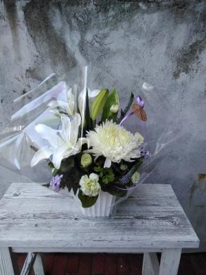 【お悔やみ・お供え】プロにおまかせ アレンジメント「白上がり」3,850円