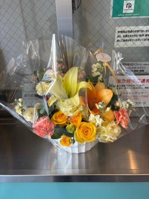 【お祝い花】プロにおまかせ アレンジメント「黄色・オレンジ系」3,850円