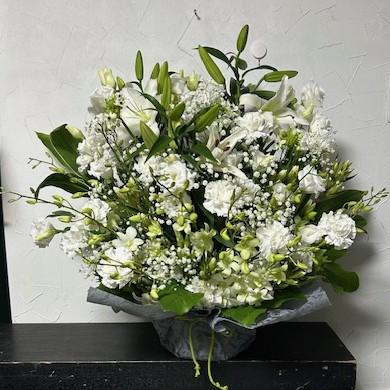 【お悔やみ・お供え】プロにおまかせ アレンジメント「白上がり」3,850円
