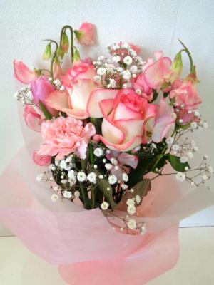 バラがメインのピンクの花束