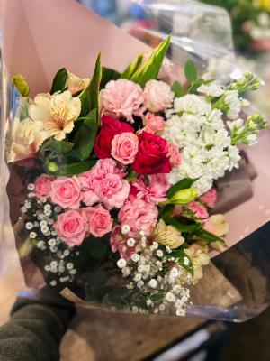 トルコギキョウ入れたピンク・パープル系おまかせアレンジ