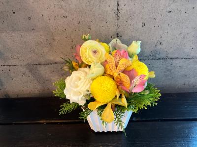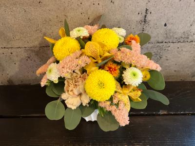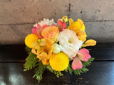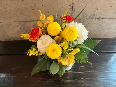 【お祝い花】プロにおまかせ 豪華アレンジメント「黄色・オレンジ系」